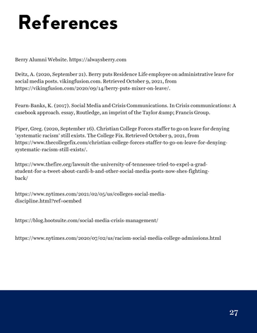 Berry College Alumni Relations Crisis Communication Plan
